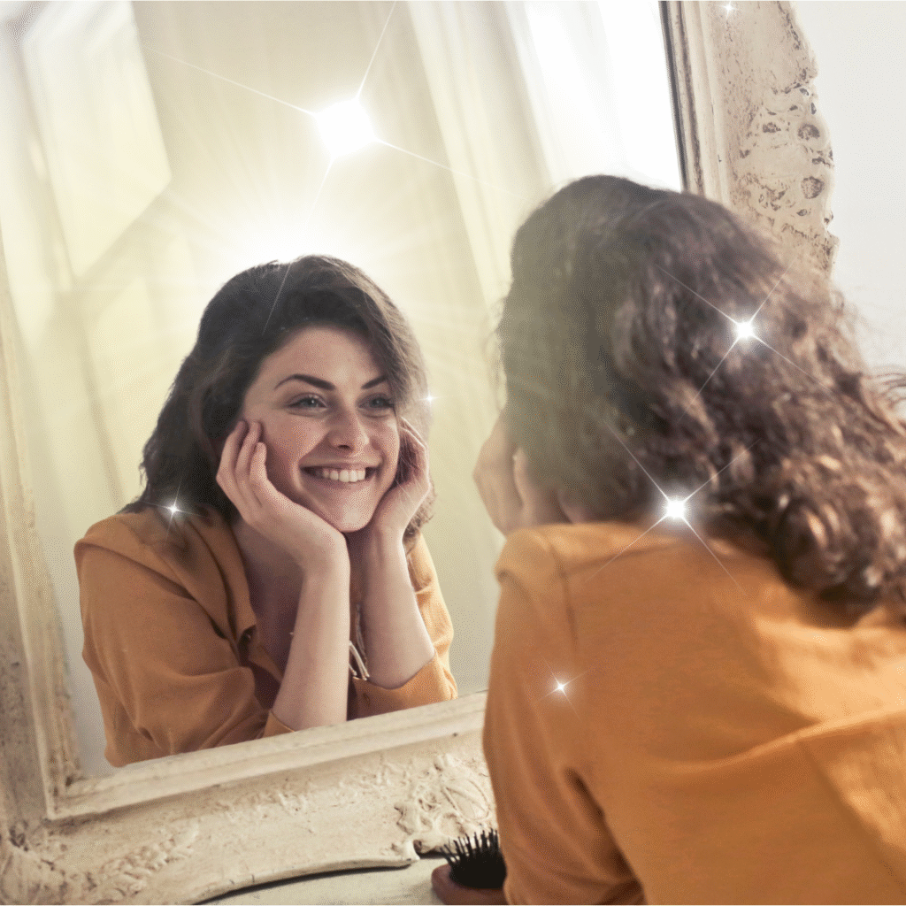 Stand before your reflection not to critique, but to see beyond the surface and invite your soul to shine through.